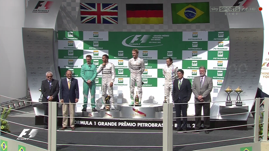 Hamilton gana la carrera seguido de los dos Red Bull. Los problemas de Rosberg en su coche han facilitado la victoria de Hamilton. El Safety Car solo ha salido una vez, a consecuencia de un toque entre Pérez y Sutil.