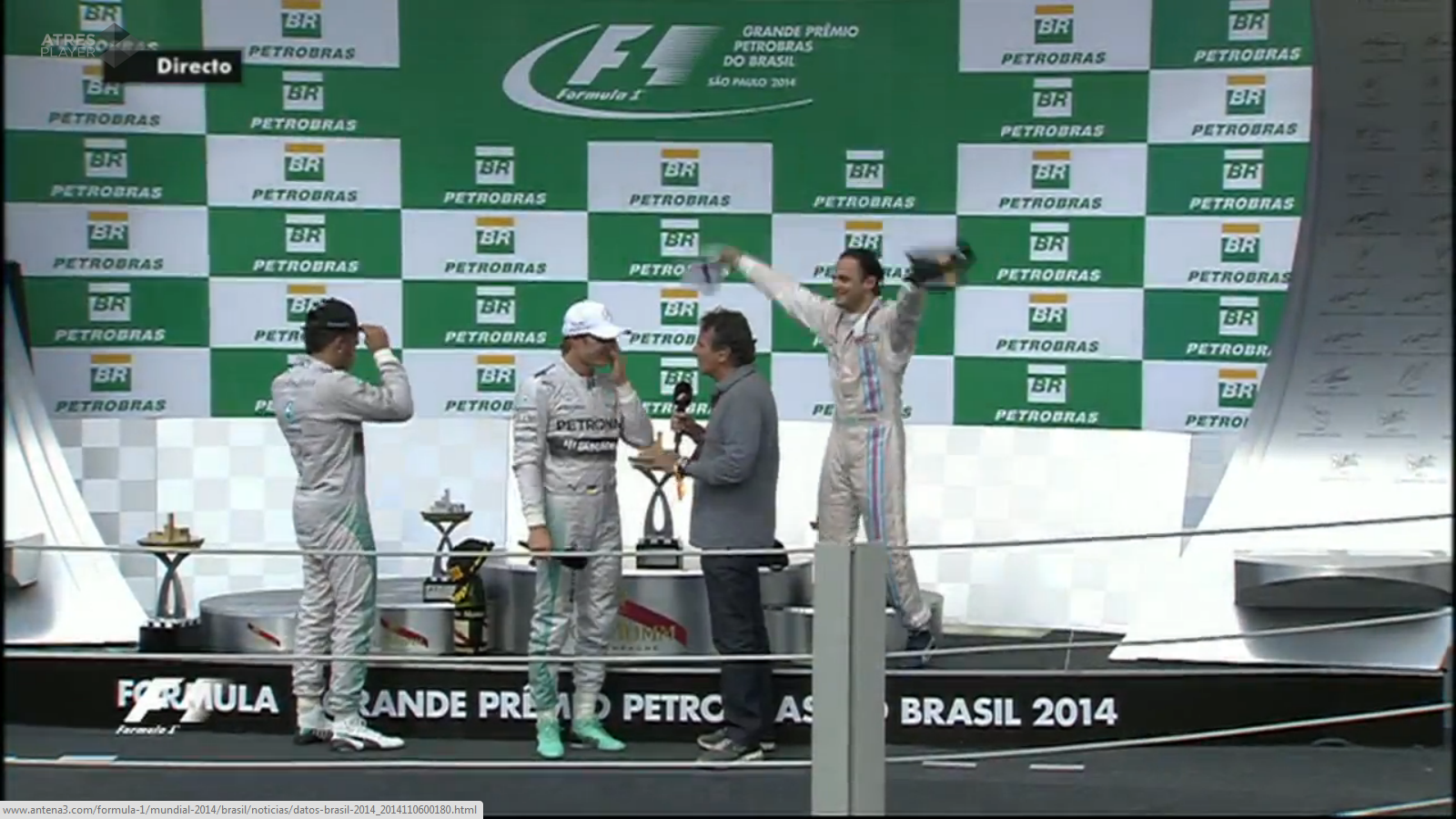 Hamilton gana la carrera seguido de Rosberg y Massa. Alonso se ha tenido que retirar por problemas mecánicos, una derrota en casa de Ferrari.