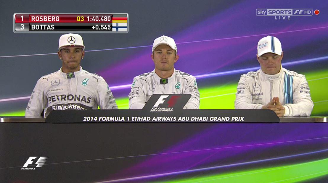 Hamilton y Rosberg consiguen la primera linea de parrilla, con los dos Red Bull detrás. Alonso solo ha podido ser quinto tras las buenas sensaciones que había transmitido a lo largo de la clasificación. Kimi con problemas de potencia solo ha podido dar una vuelta en la Q3.