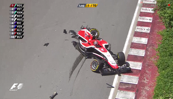 Recordamos que Massa primero, Rosberg segundo y Pérez tercero. Le dicen por radio a Rosberg que cuide los frenos siendo el origen de los problemas de Hamilton. Massa para y cae al final del pelotón. La carrera se pone interesante porque Rosberg muy lento con problemas, detrás Pérez y Vettel como dos balas en busca de una victoria. Kvyat abandona.