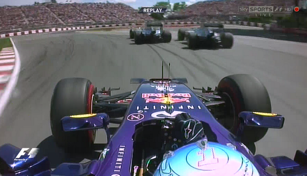 El semáforo se apaga! Vettel le gana la partida a Hamilton y los mismo hace Vergne respecto Alonso. Rosberg ha defendido con uñas y dientes su posición hasta el punto que han estado a punto de tocarse (Rosberg-Hamilton).