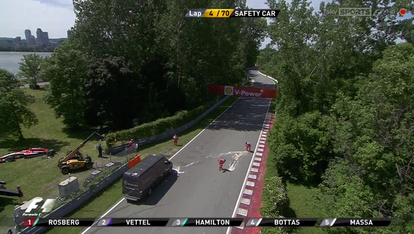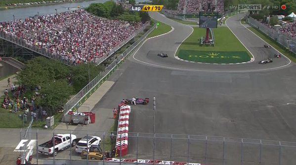 Mientras el Safety Car se mantiene en pista, recordamos que Vergne y Ricciardo en estos momentos tienen el consumo más alto. En la vuelta 7, se retira el Safety Car. Hamilton puede con Vettel gracias al DRS cuando vemos un trompo de Kvyat pero sin consecuencia.