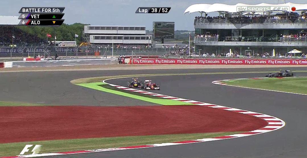 Última vuelta y definitivamente Vettel frena más tarde que Alonso y se coloca quinto. Mientras delante Hamilton cruza la línea de meta ganando en su casa con Bottas segundo y Ricciardo tercero. Una carrera donde ha habido emoción de inicio a fin. Una carrera que ha puesto el mundial en un suspiro, porque Hamilton se encuentra a 4 puntos de su compañero. El próximo GP dentro de 15 días en casa de Rosberg, el GP de Alemania. Hasta entonces!