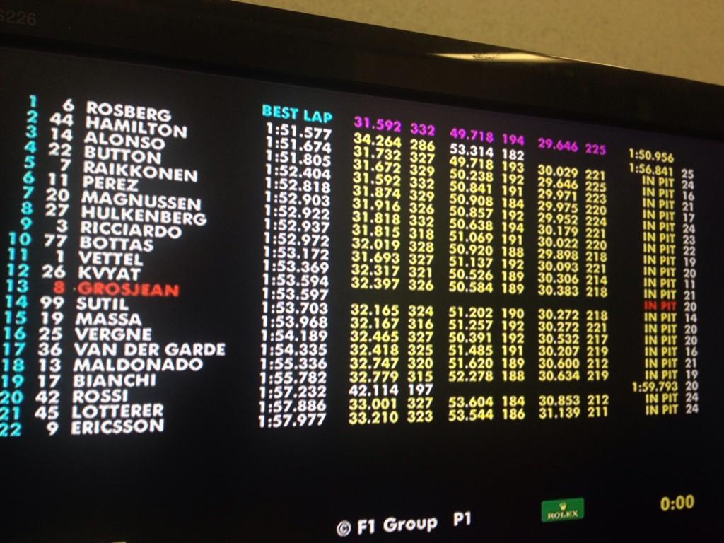 Durante esta primera sesión Van der Garde sustituirá a Gutiérrez con el Sauber. Además, destacar la preséncia de Lotterer en Caterham y Rossi en Marussia.