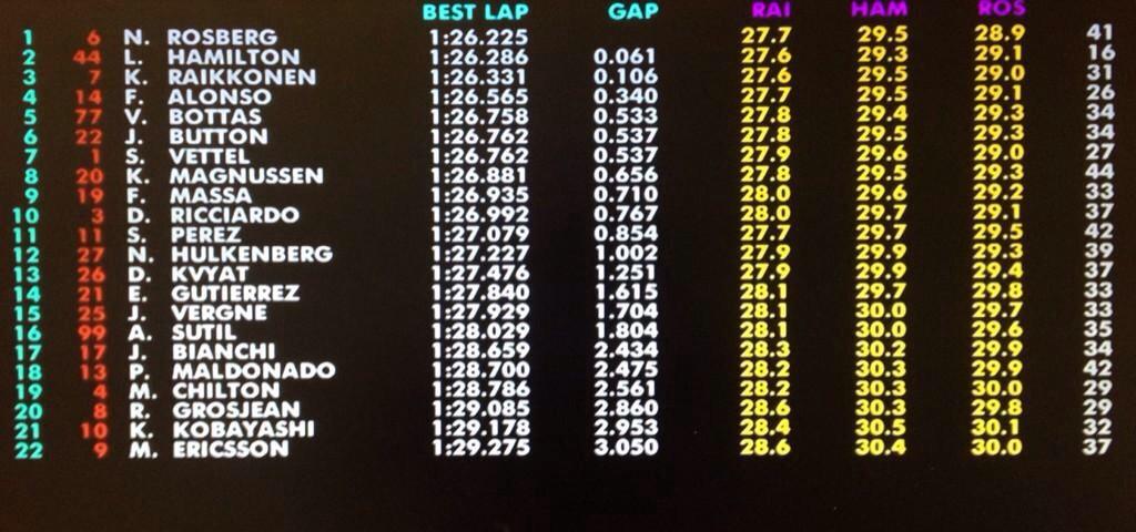 Bandera a cuadros!! Nico Rosberg el más rápido de la sesión seguido de Hamilton, Kimi y Alonso.