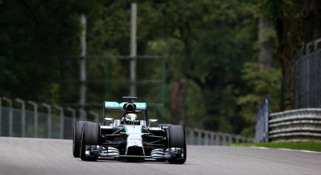 El semáforo en verde y comienza los terceros entrenamientos libres. Primera pasada de frenada en la "Prima Variante" por parte de Magnussen que se va recto en la escapatoria. Pero consigue continuar en pista sin más consecuencia.