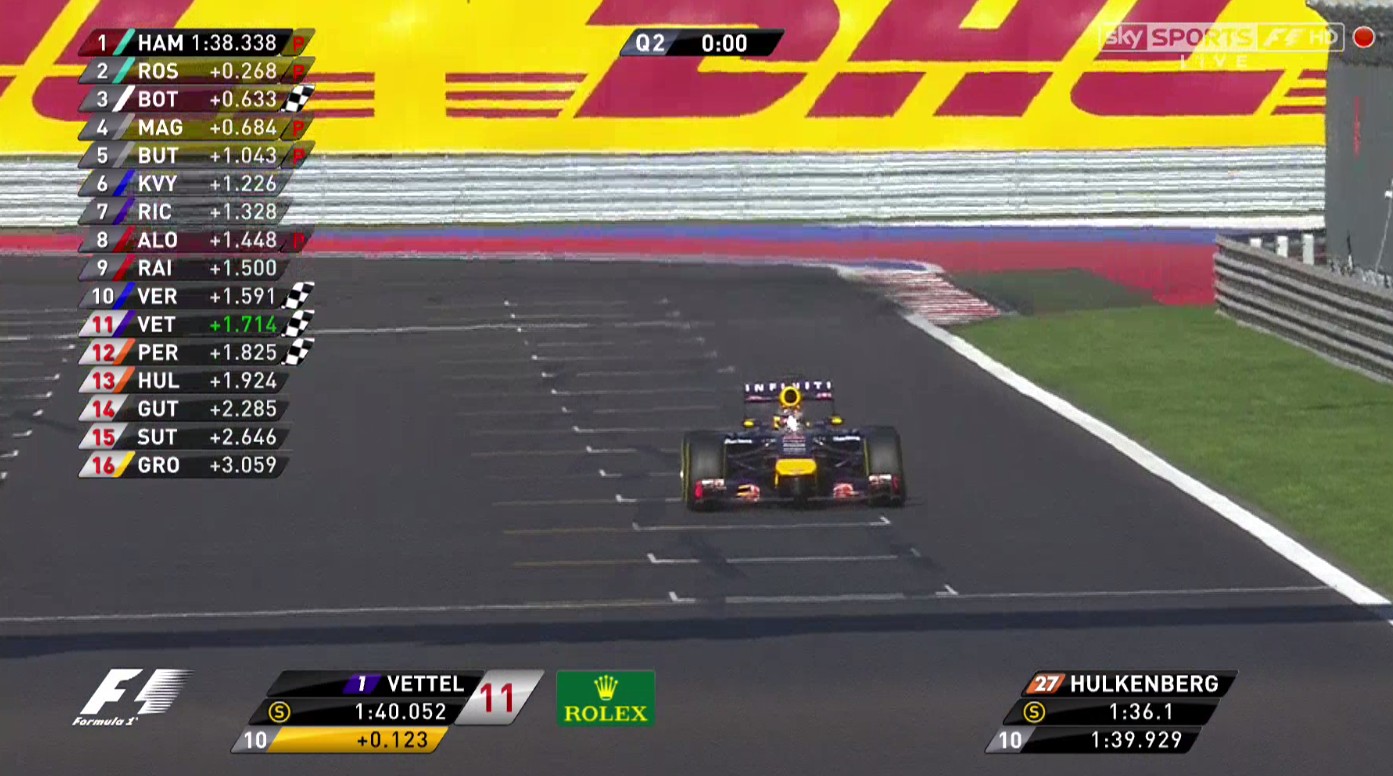ELIMINADOS DE LA Q2: Vettel, Hülkenberg, Pérez, Gutiérrez, Sutil y Grosjean.