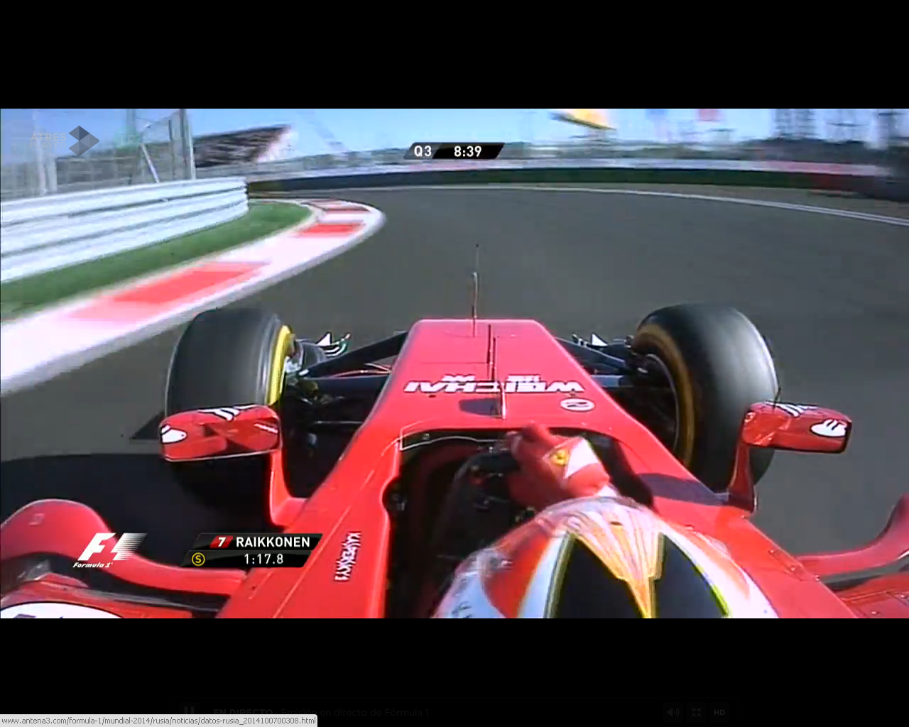 Q3: Hamilton se sitúa primero con clara diferencia respecto a Rosberg que es segundo. Ricciardo se marcha al box a falta de un minuto, parece que los neumáticos no van a dar más de si y ha preferido no seguir.