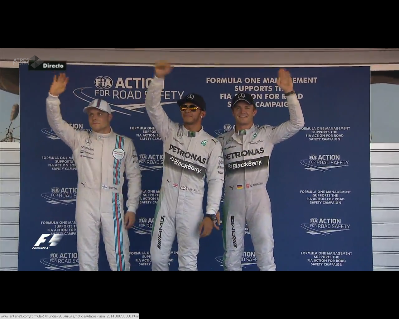 El resto le queda una vuelta para acabar la Q3. Bottas marca el mejor crono en el sector 1 y 2, pero un fallo en el tercero le ha dejado sin la Pole. Final de la sesión! Hamilton nuevo Poleman con Rosberg segundo y Bottas tercero.