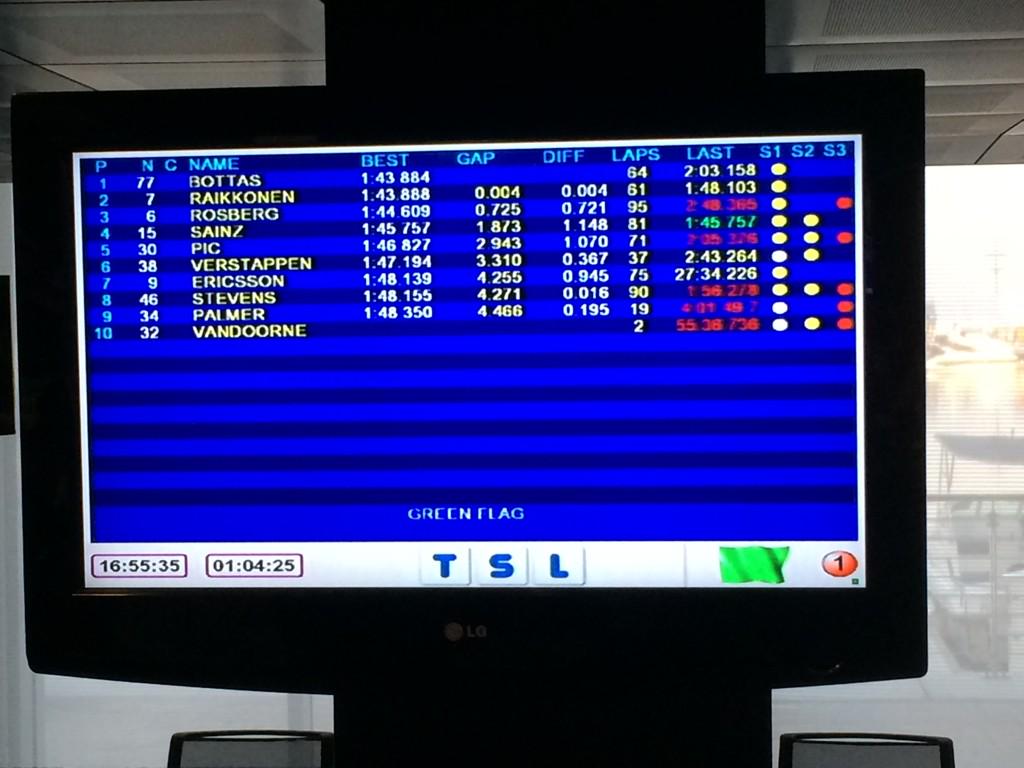 Williams: Bottas ha realizado el mejor crono del día. El equipo Williams era hoy el encargado de probar las nuevas gomas de Pirelli, y como afirmaba el piloto más tarde, esta contento con el resultado y con la degradación de los nuevos compuestos. Cree que han creado un buen coche que será la base para el del año que viene.