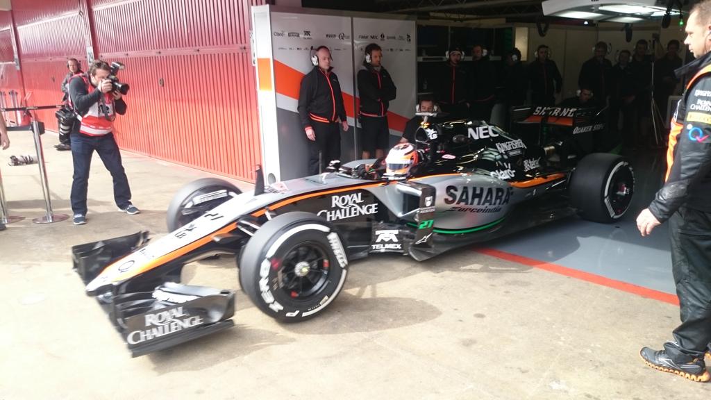 Maldonado también sale con el compuesto duro de invierno y marca un crono de 1'32''439'''. Vettel con medios marca un crono de 1'31''129'''. Nico con goma media se coloca al frente de la clasificación con un crono de 1'25''730'''. Button también sale a pista con goma media y marca un crono de 1'28''868'''.