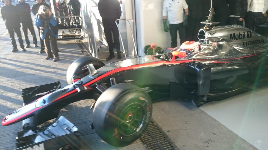 Button sale a pista a realizar una vuelta de instalación la cual ha sido muy lenta y el sonido ronco continúan siendo una característica del MP4-30.