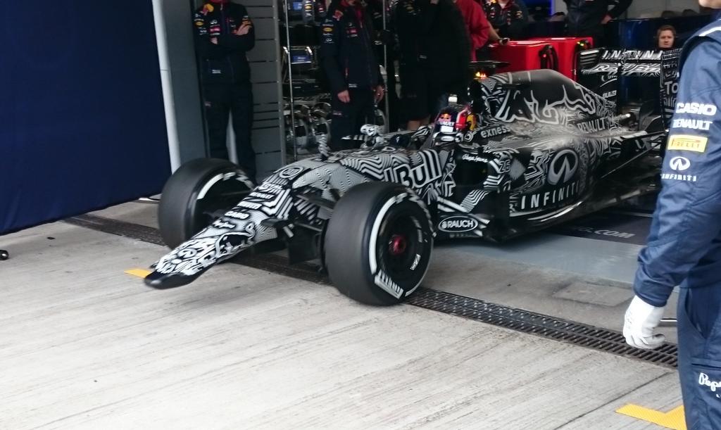 Sorprendente! Kvyat sale a pista sin alerón delantero, parece ser que el piloto ha roto el alerón con un piano y a falta de recambios buena es la improvisación.