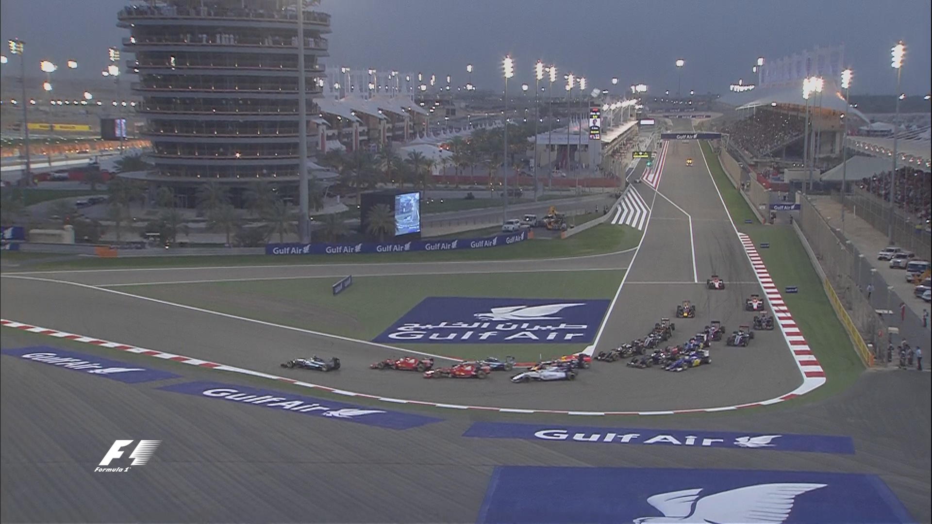 Arranca el Gran Premio, Hamilton mantiene la posición seguido de Vettel y Kimi. Rosberg cae a la cuarta posición. Massa en la parte baja empieza su remontada. Grosjean ya es séptimo, mientras, Carlos ha caído a la décima plaza.