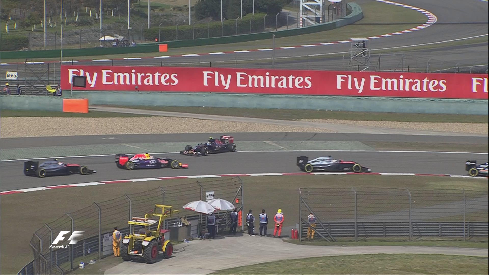 Lucha intensa por la P13 entre Button, Maldonado y Alonso que finaliza con un toque entre Button y Maldonado en la curva 1. Alonso se coloca P13, Button P14 y Maldonado abandona.