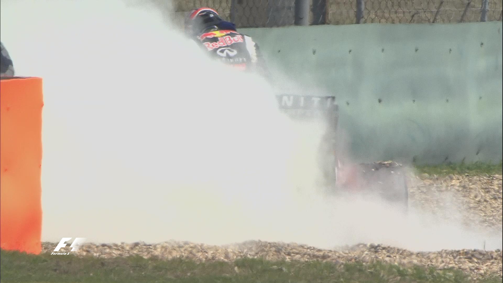 Abandona Kvyat! Debido a una rotura de motor que ha provocado una humareda de humo blanco y fuego. Los problemas en Red Bull se suceden, recordamos que Kvyat tuvo problemas con los frenos en los libres.