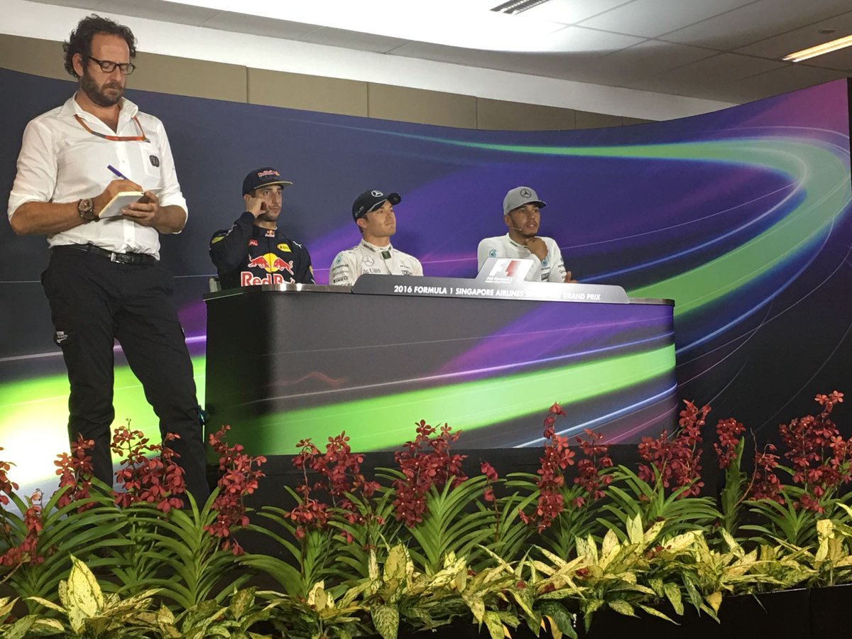 Rosberg gana por primera vez en Singapur seguido, a menos de un segundo, de Ricciardo y Hamilton. Los Ferrari han acabado P4 y P5 después de una solida remontada de Vettel pero una mala estrategia de Kimi. Alonso puntúa de nuevo tras finalizar P7.
