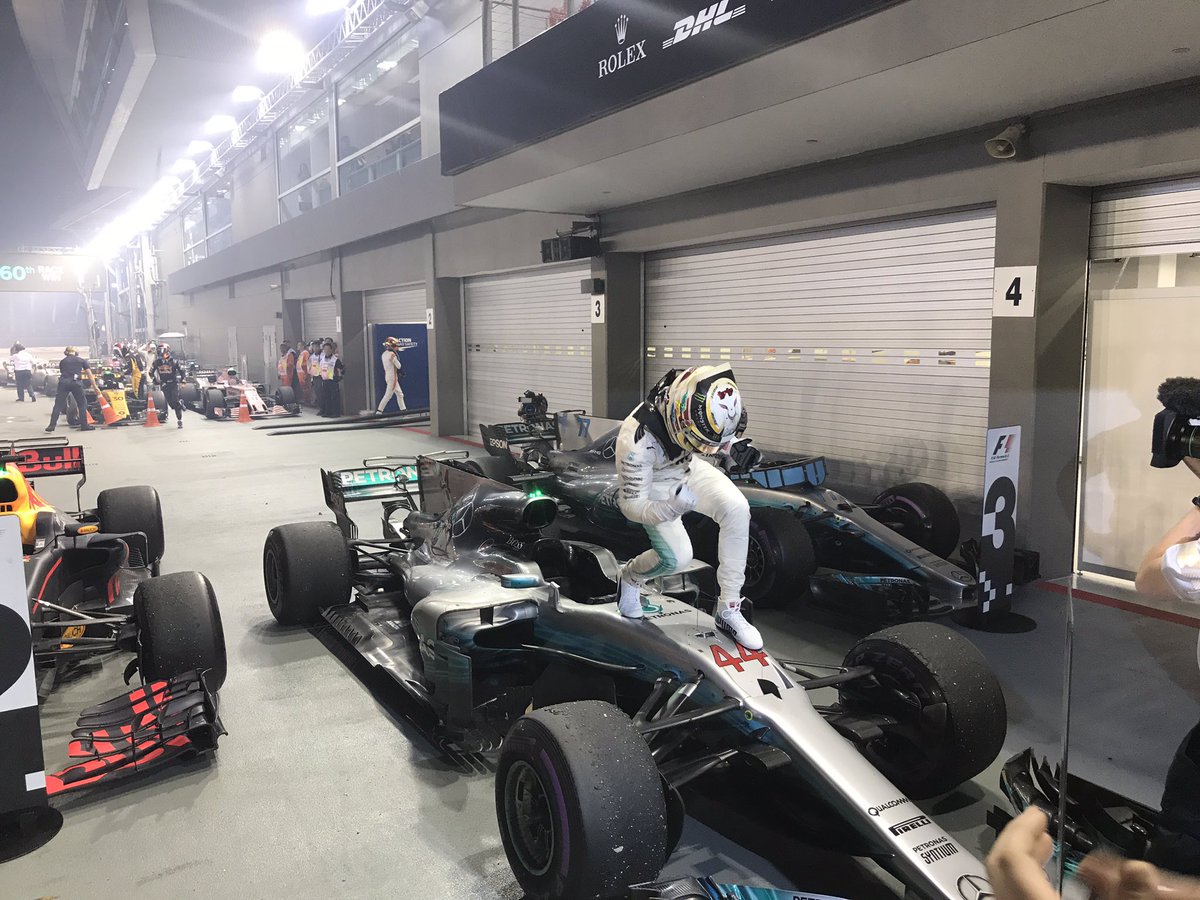 Lewis Hamilton gana en Singapur con Ricciardo y Bottas en el podio. Carlos Sainz firma el mejor resultado en F1 con un cuarto puesto, delante de Pérez, Palmer y Vandoorne. Una carrera accidentada con ocho abandonos y tres SC que ha hecho que la carrera acabará por tiempo no por vueltas.