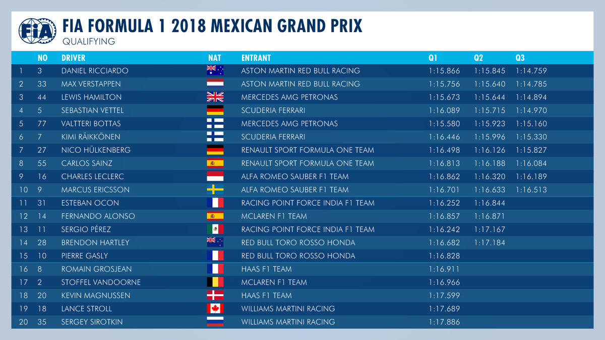 Tremendo. Ricciardo le levanta la pole a Max Verstappen. #MEXmovistarF1 pic.twitter.com/KJ57FmSZeL— F1 en Movistar+ (@movistar_F1) 27 de octubre de 2018