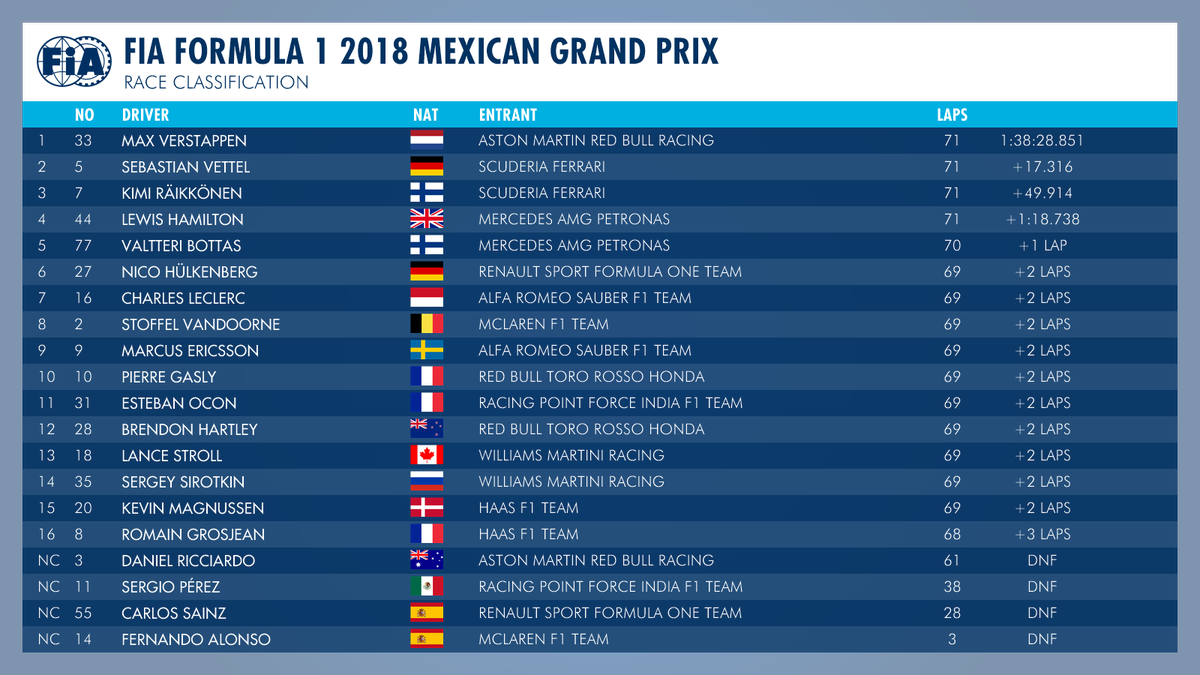 LAP 49/71: Same corner, moments later...— Formula 1 (@F1) 28 de octubre de 2018