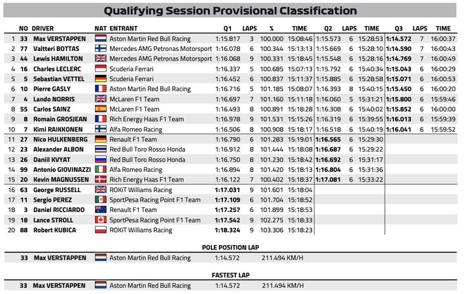 That's P1 for @Max33Verstappen! 👏 A first pole position in #F1 for the Dutchman! 🔥#HungarianGP pic.twitter.com/H3N0Uwddc8— Aston Martin Red Bull Racing (@redbullracing) August 3, 2019